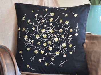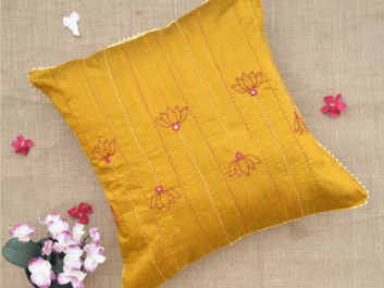 Silk Cushion Cover With Lotus Embroidery