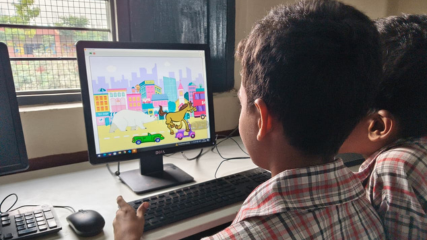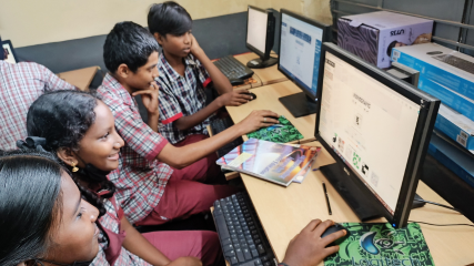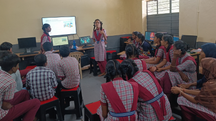 Each school is equipped with 16–23 computer systems, depending on class strength, maintaining a 1:2 student-to-computer ratio. For larger classes, students are divided into sections to ensure effective learning. All computer labs are equipped with projectors and speakers, enabling clear demonstrations and guided instruction. Hands-on learning is prioritized, with approximately 80% of the curriculum delivered through practical, computer-based activities.